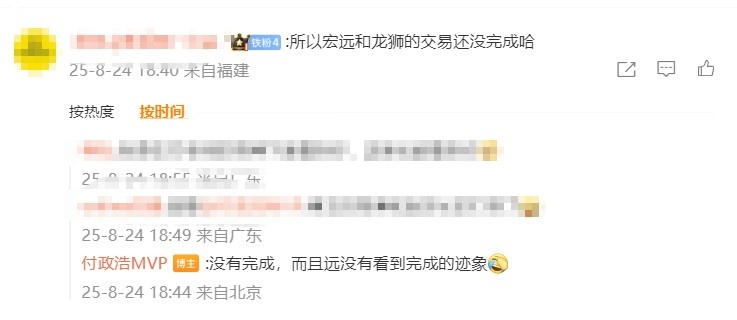 在这条微博动态的评论中,付政浩还回复网友:“(广东和广州的交易)没有完成,而且远没有看到完成的迹象。”