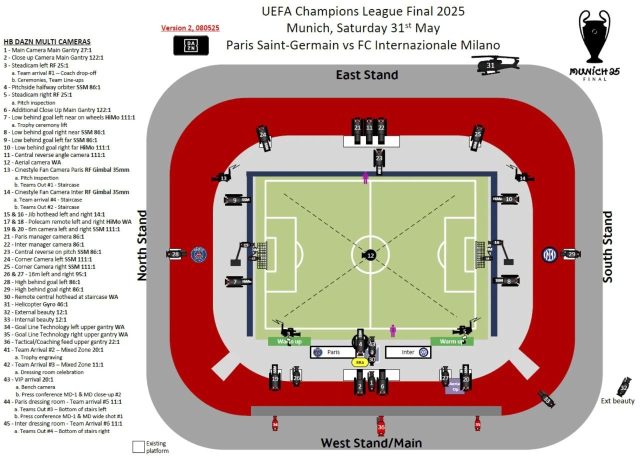 摄影专业媒体摄像人网发文,解读明天凌晨欧冠决赛的转播机位以及设备配置。