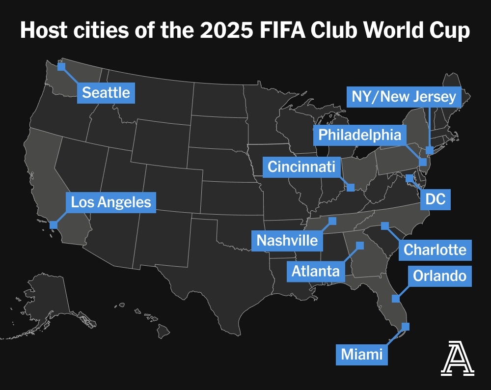 世俱杯主办比赛城市分布